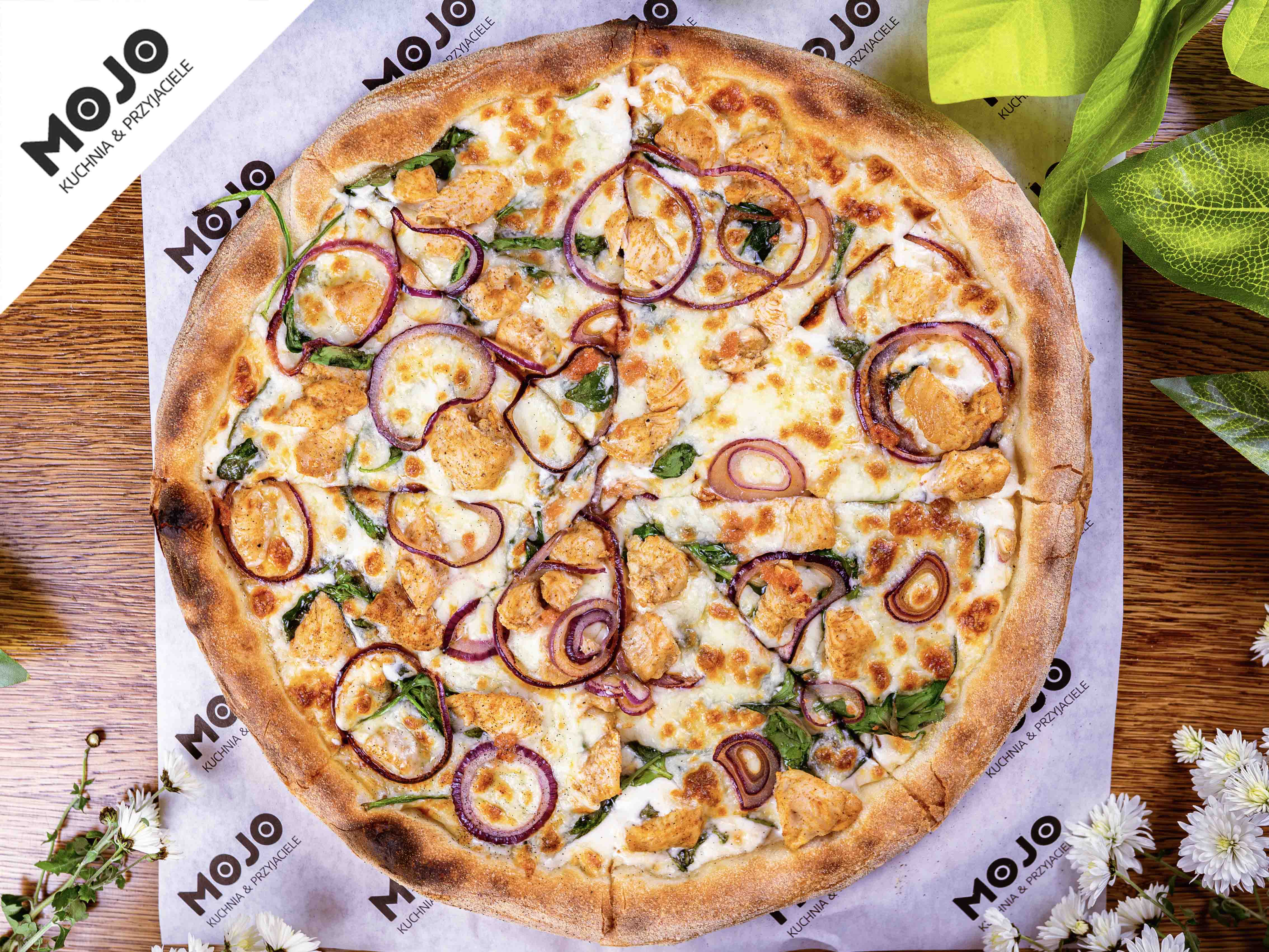 sos Cezar / mozzarella / kurczak / szpinak / czerwona cebula / czosnek